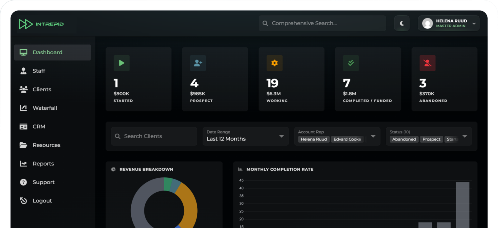 Intrepid serves as a dynamic hub where Brokers, Lenders, and institutions unite seamlessly on a single, modern FinTech platform designed for efficiency and collaboration.